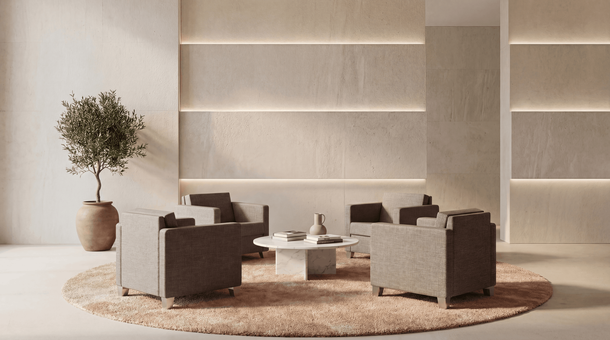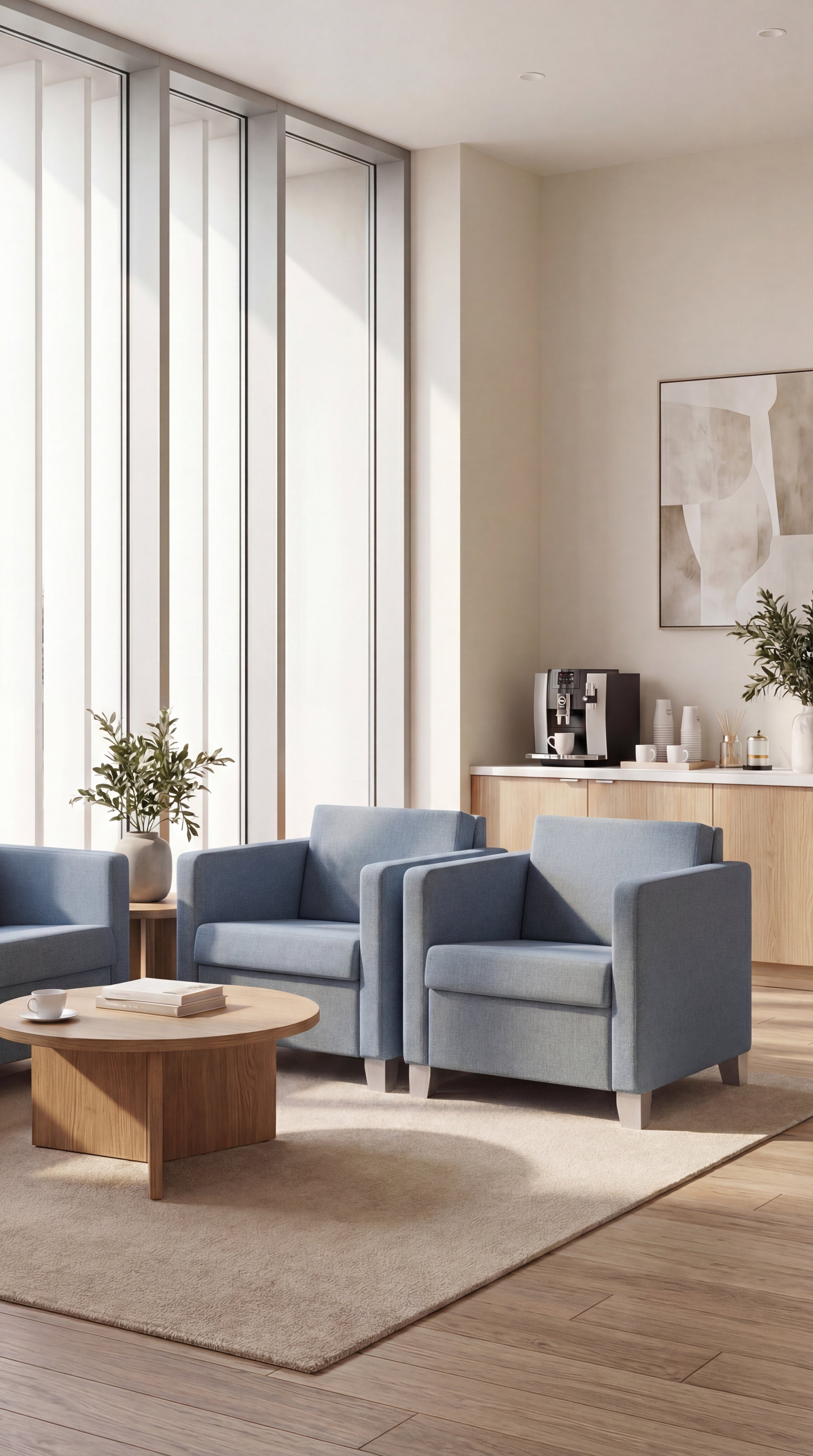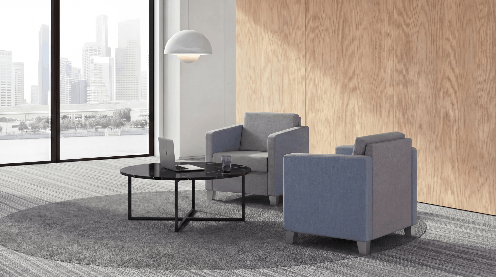 Light-looking contemporary and captivating lounge area chair.