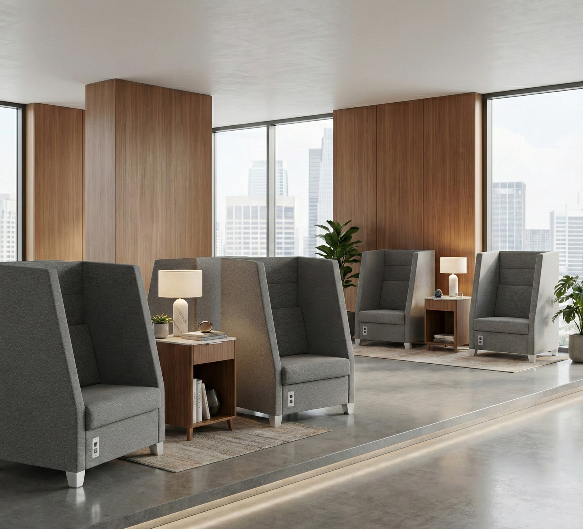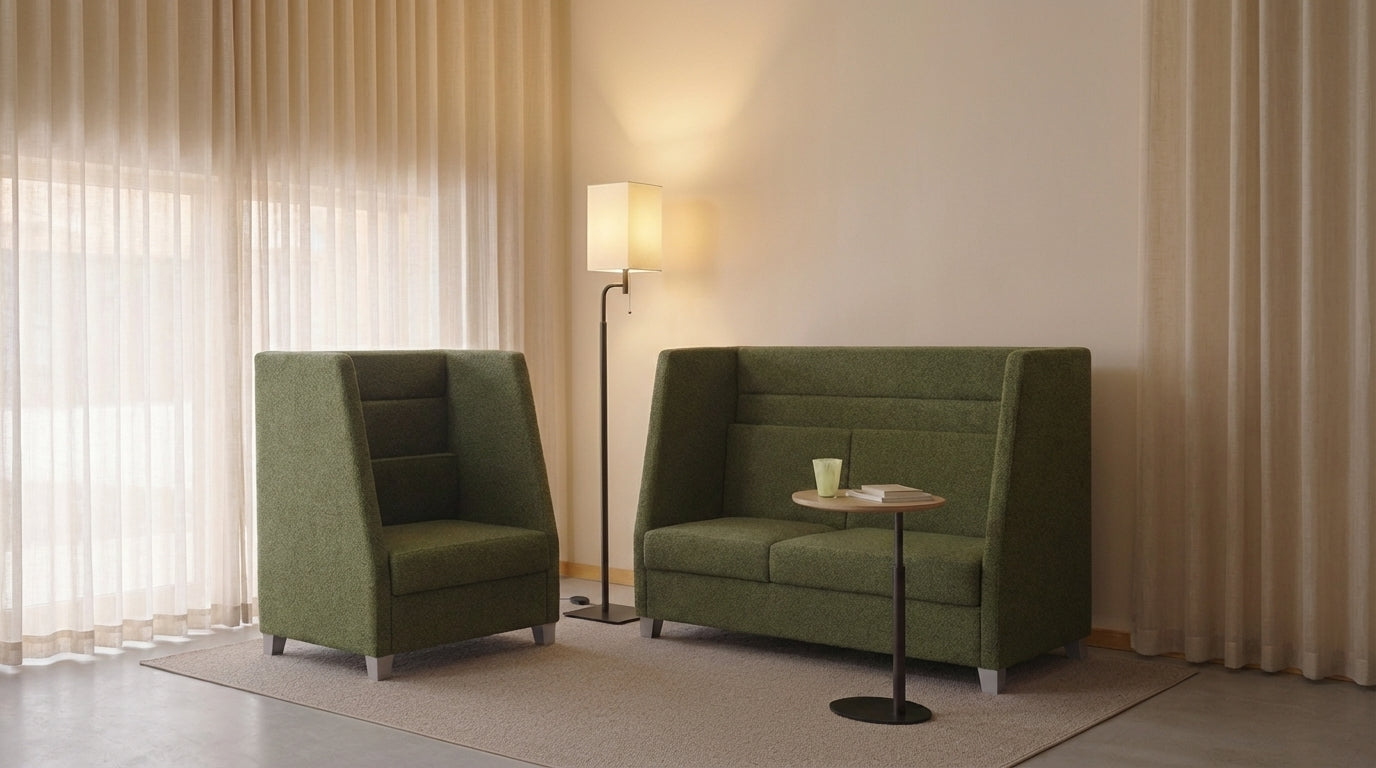 • Le fauteuil Trullo est doté d'un double panneau entièrement rembourré, offrant un agencement semi-privé et propice à la concentration. Une prise électrique/USB est disponible en option pour ne jamais avoir à chercher une prise de courant, ni à tomber en dessous de 10 % de batterie. Complétez votre ensemble avec nos tables d'appoint et nos bancs.