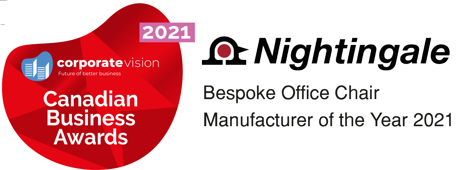 Nightingale is excited to announce its success in the 2021 Canadian Business Awards after being named Bespoke Office Chair Manufacturer of the Year by Corporate Vision.